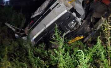 यहाँ ट्रक खाई में गिरा, एक की मौत, एक घायल