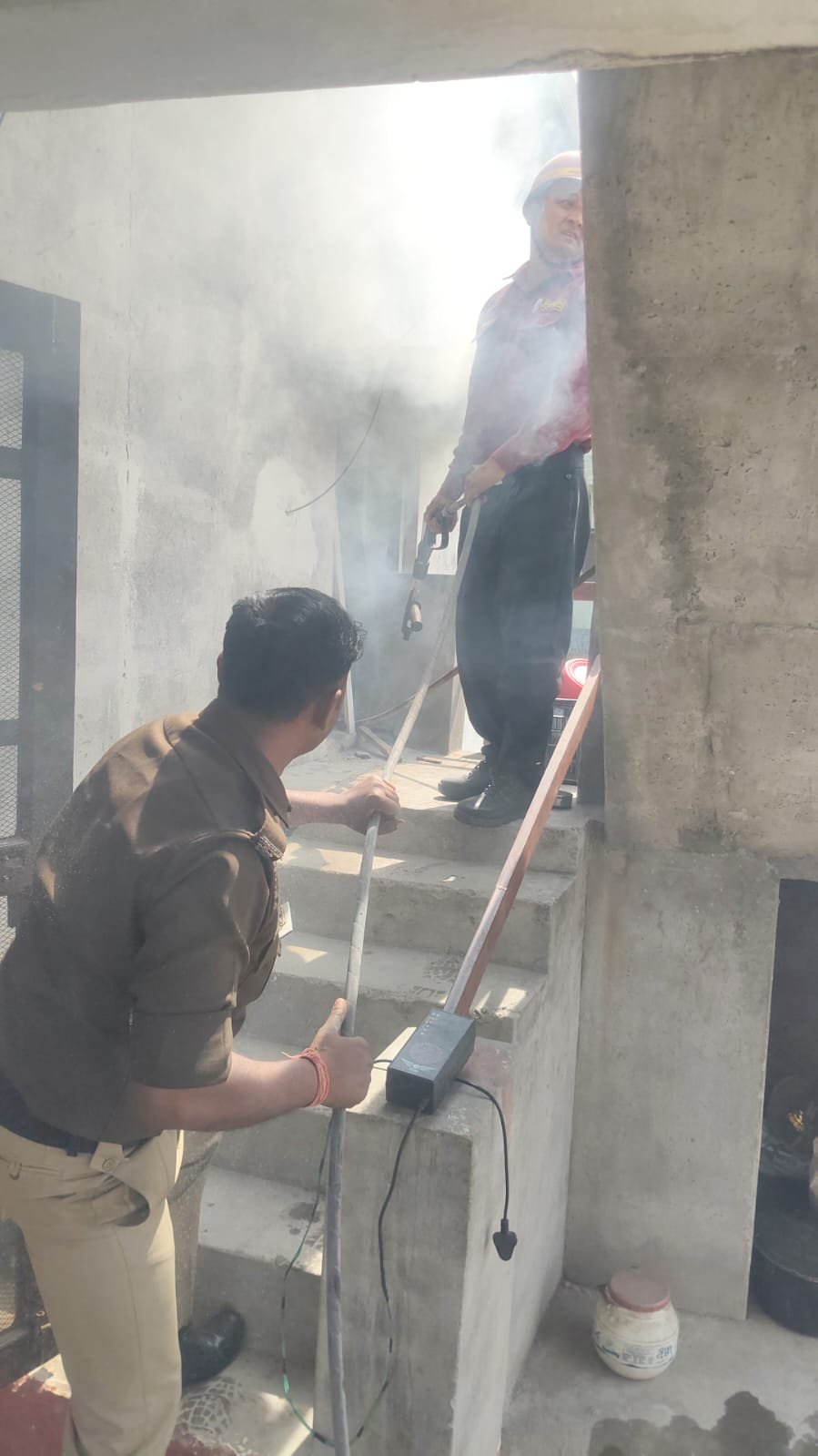 सिलेंडर में लगी भीषण आग, पुलिस और फायर टीम की सूझबूझ से टला बड़ा हादसा