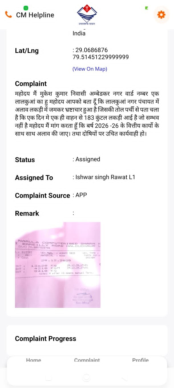 समाजसेवी मुकेश कुमार ने मामले की शिकायत मुख्यमंत्री समाधान पोर्टल में शिकायत दर्ज कराते हुए आयुक्त कुमायूं दीपक रावत और जिलाधिकारी नैनीताल ललित मोहन रयाल को पत्राचार कर वर्ष 2025-26 के वित्तीय कार्यों की जांच कराने की मांग के साथ ही इस वर्ष सर्दियों में जलाए गए अलाव के लिए खरीदी गई लकड़ी की भी विस्तृत जांच कराने की बात कही है।