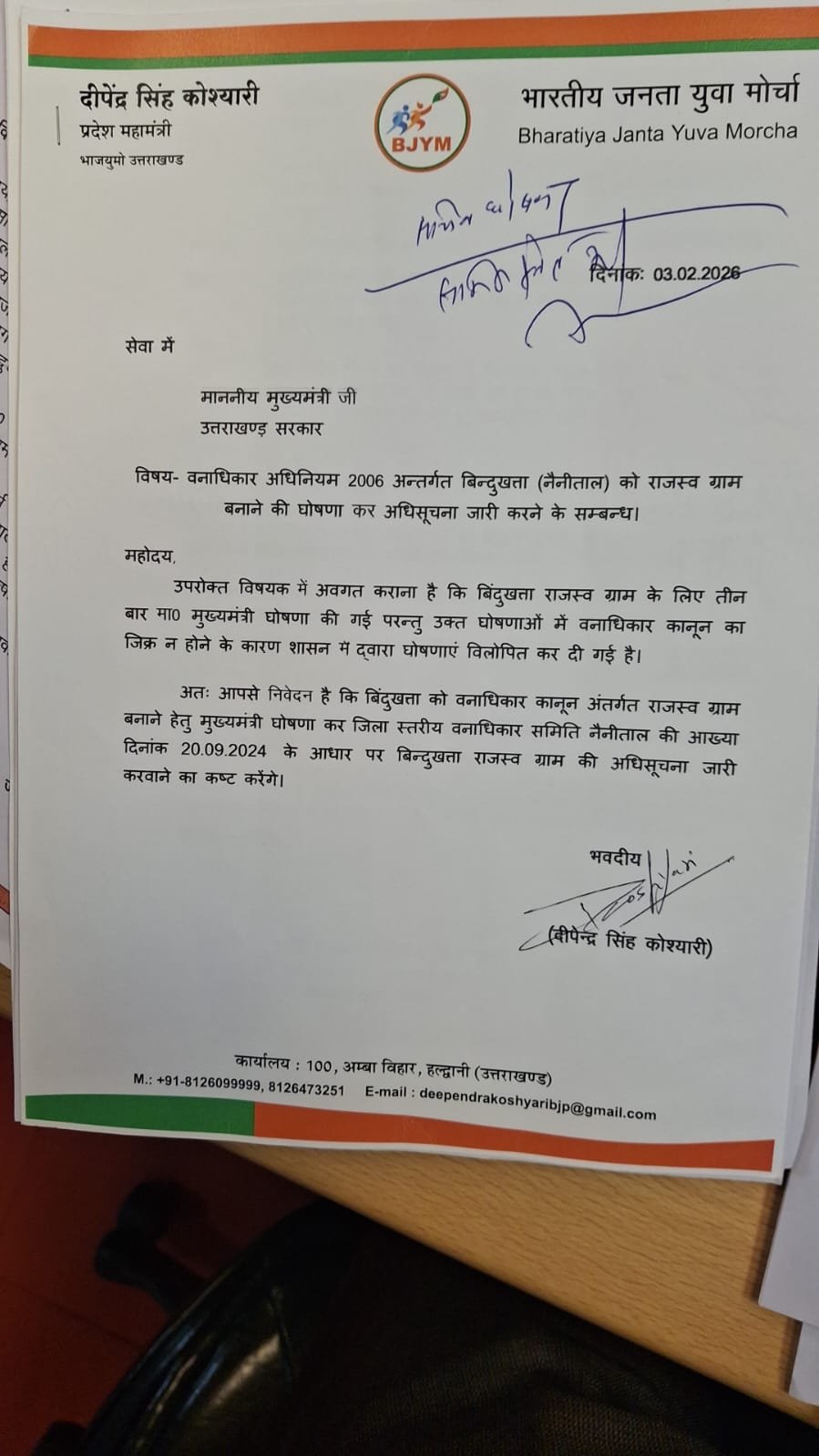 बैठक के दौरान प्रतिनिधिमंडल ने राजस्व ग्राम बिंदुखत्ता से संबंधित विभिन्न जनहित मुद्दों को मुख्यमंत्री के समक्ष रखा। इस पर मुख्यमंत्री पुष्कर सिंह धामी ने समस्याओं पर गंभीरता से विचार करने और जनहित से जुड़े मामलों में सकारात्मक पहल करने का आश्वासन दिया।