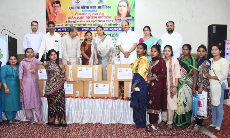 कैबिनेट मंत्री ने प्रशिक्षण प्राप्त महिलाओं को बांटी सिलाई और ब्यूटीशियन किट