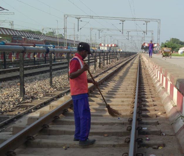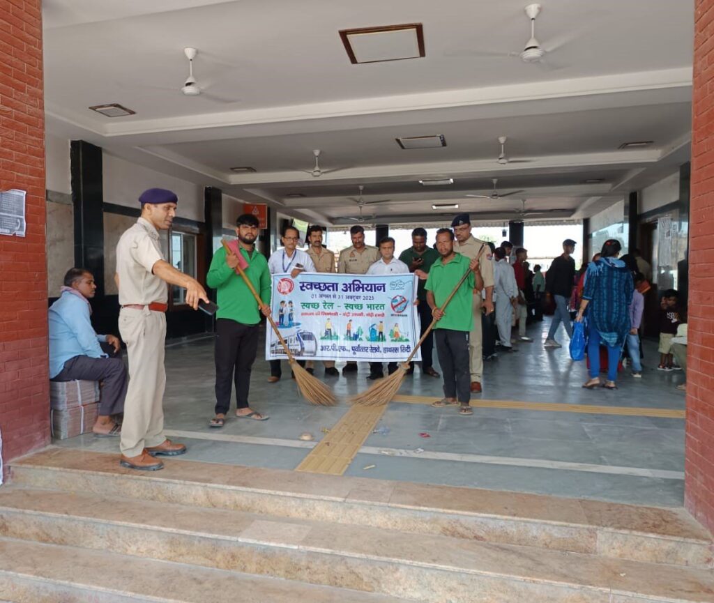 इज्जतनगर मंडल पर स्वच्छता अभियान के तहत रेलवे स्टेशनों व ट्रेनों में गहन सफाई अभियान