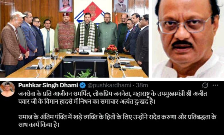 महाराष्ट्र के डिप्टी CM अजित पवार का विमान हादसे में निधन, CM धामी ने जताया दुःख…