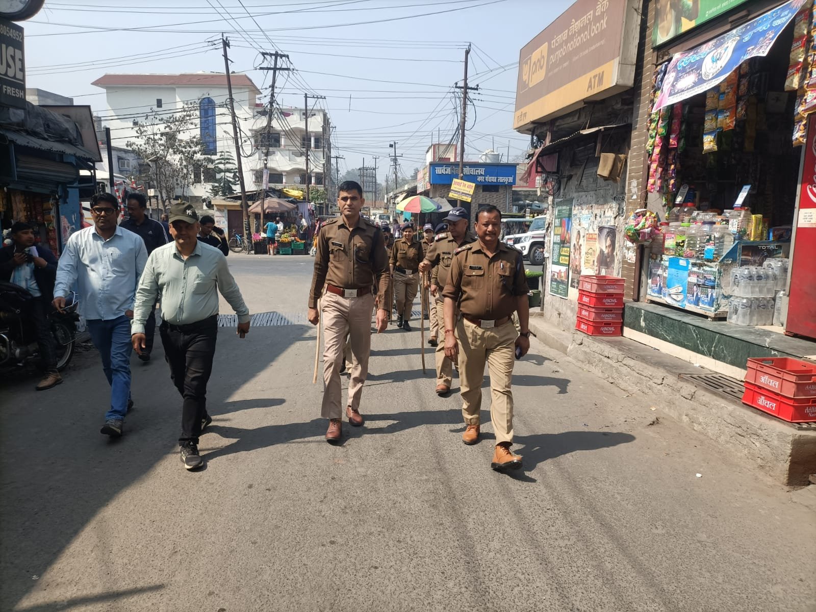 कोतवाली के प्रभारी निरीक्षक ब्रजमोहन सिंह राणा के नेतृत्व में भारी संख्या में पुलिस बल और महिला पीएसी कर्मियों ने लालकुआं नगर क्षेत्र में फ्लैग मार्च किया। यह मार्च मुख्य बाजार, बंगाली कॉलोनी, हाथी खाना तथा 25 एकड़ क्षेत्र से होकर गुजरा। पुलिस बल कतारबद्ध होकर पूरे क्षेत्र में भ्रमण करता रहा, जिससे आमजन में सुरक्षा का विश्वास मजबूत हुआ।