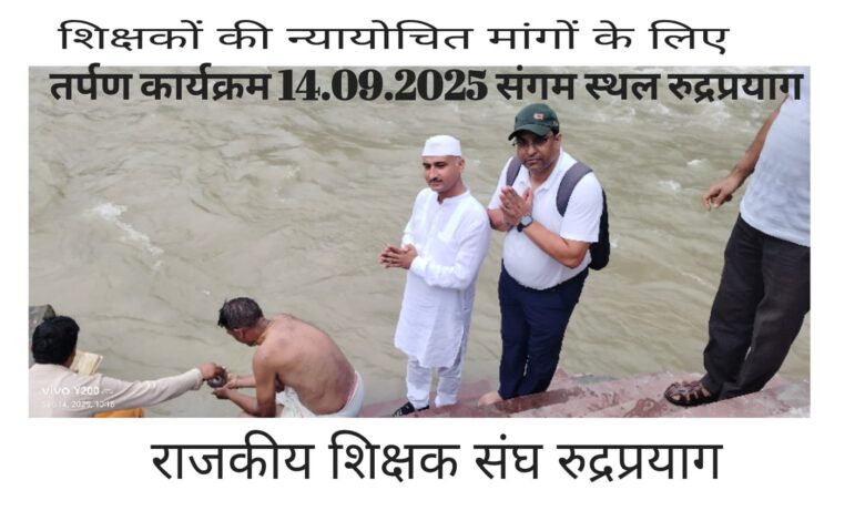 रुद्रप्रयाग केशिक्षकों ने किया विरोध में रुद्रप्रयाग संगम में तर्पण कार्यक्रम