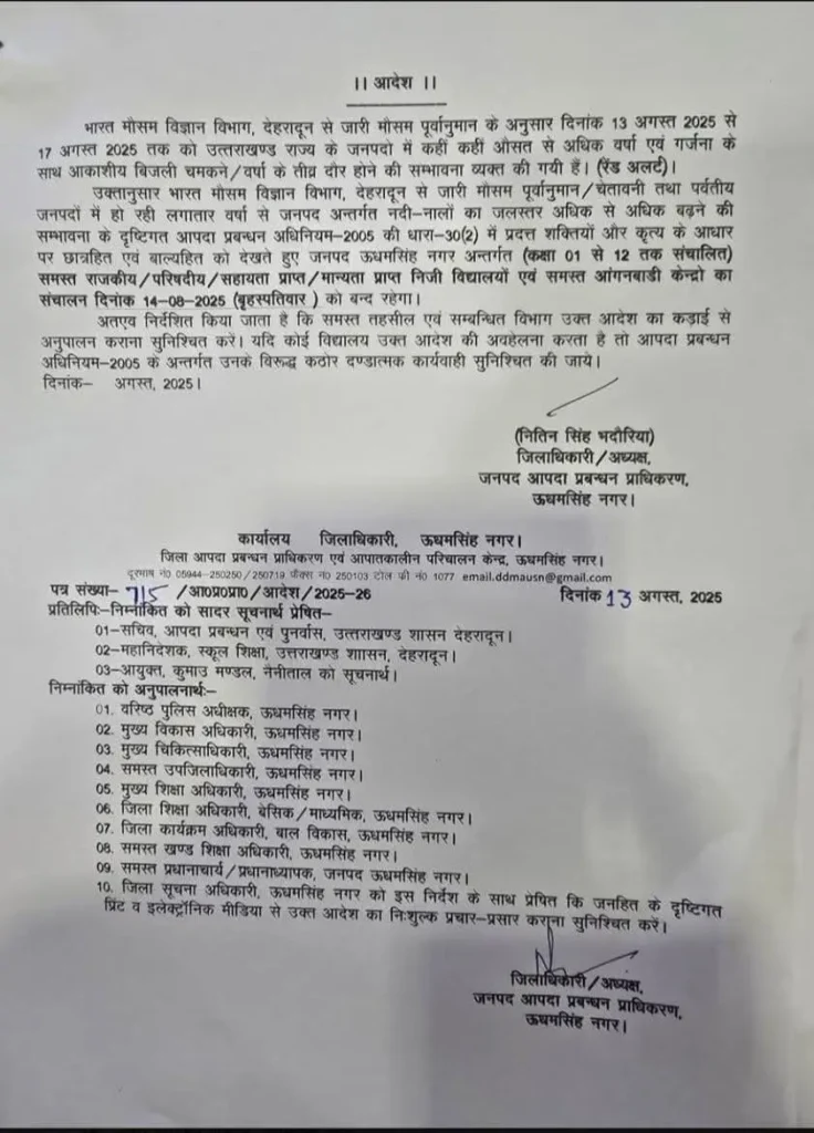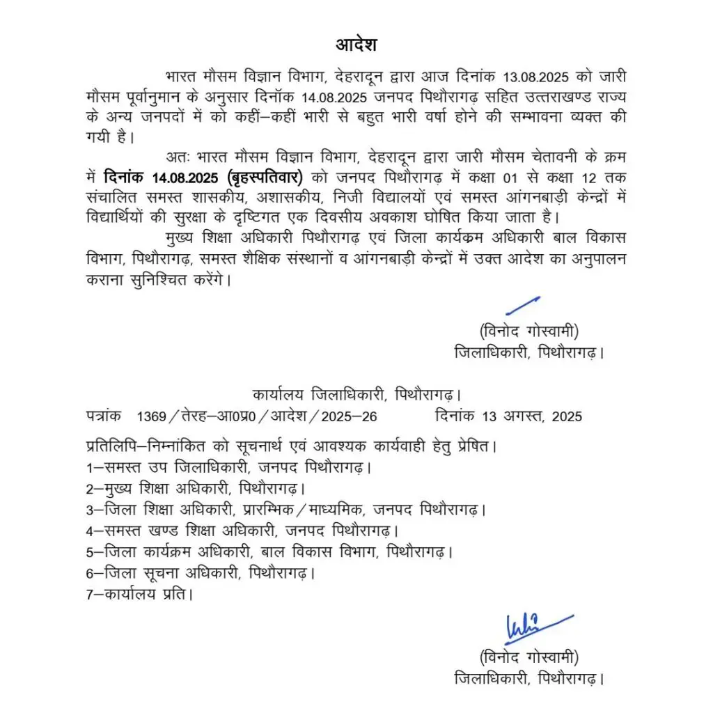 Home/उत्तराखंड/कल इन 4 जनपदों में नहीं खुलेंगे स्कूल, छुट्टी घोषित, आदेश जारी… उत्तराखंडमौसमशिक्षा कल इन 4 जनपदों में नहीं खुलेंगे स्कूल, छुट्टी घोषित, आदेश जारी… Dandi Kathi Send an email August 13, 2025Last Updated: August 13, 20250 2,333 Less than a minute Facebook Twitter WhatsApp Telegram शेयर करें शेयर करें TagsDehradun News Uttrakhand news Dandi Kathi Send an email August 13, 2025Last Updated: August 13, 20250 2,333 Less than a minute Facebook Twitter WhatsApp Telegram Share Facebook Twitter WhatsApp Telegram Share via Email Print